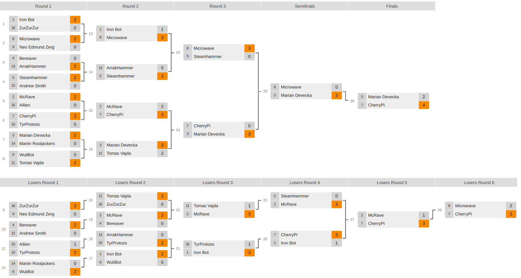 - Mixed division: Double elimination bracket of 16 best bots (including non-students and teams).